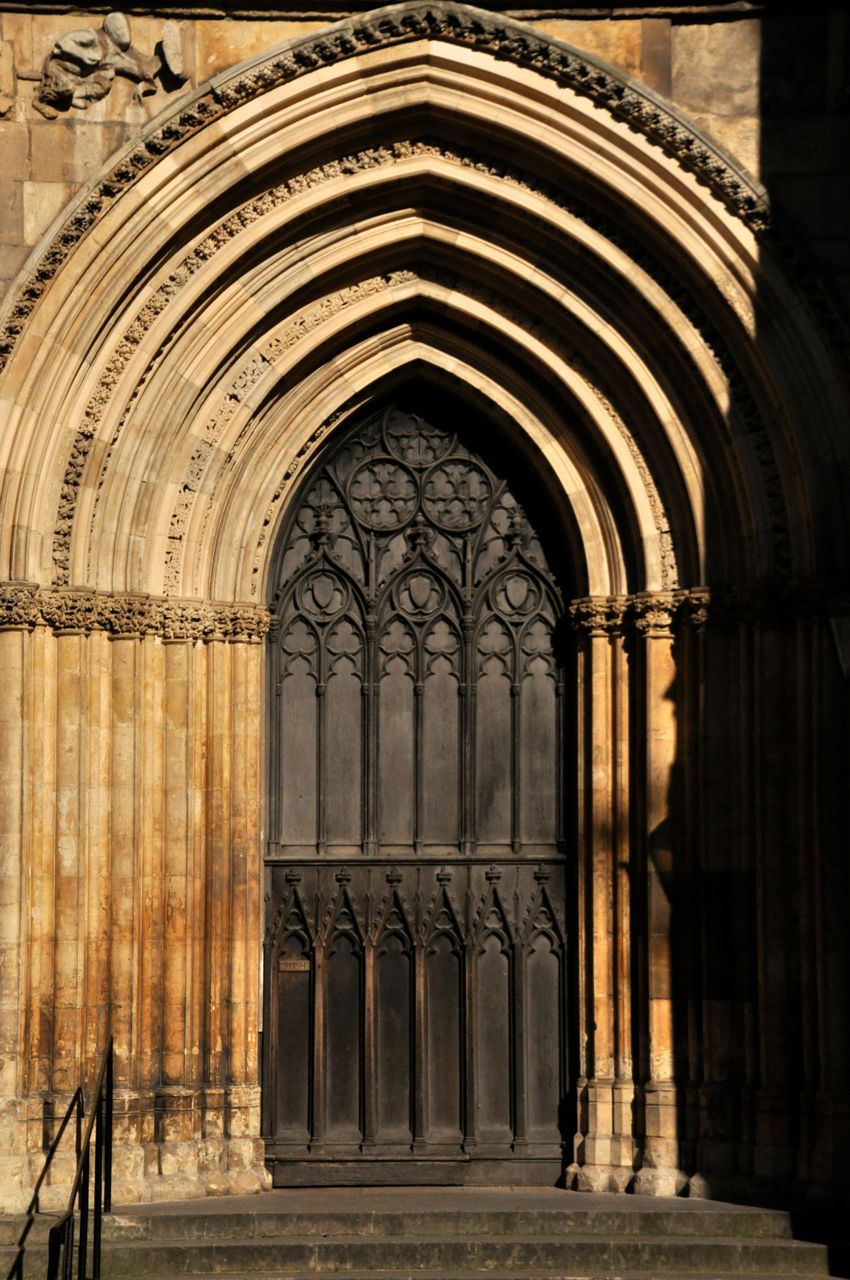 Door at base of tower, with window-like tracery Published December 13, 2014 at 850 × 1280 in The York Minster ← Previous Next → Post a comment or leave a trackback: Trackback URL.
