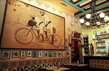 The painting on the wall is by Ramon Casas, one of the backers of Els Quatre Gats. Picture from the internet. Published March 3, 2017 at 452 × 298 in Barcelona VII: The Old City, called the “Barri Gòtic” or Gothic Quarter ← Previous Next → Trackbacks are closed, but you can post a comment.