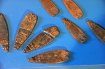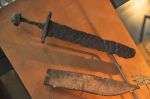 There were a few exhibits from Roman times – statues, busts, a mosaic floor, parts of a painted Roman wall, pendants, jewelry, etc, but most interesting to me was the arm purse (last picture below). Soldiers were paid in silver coin; since there were no banks, a soldier